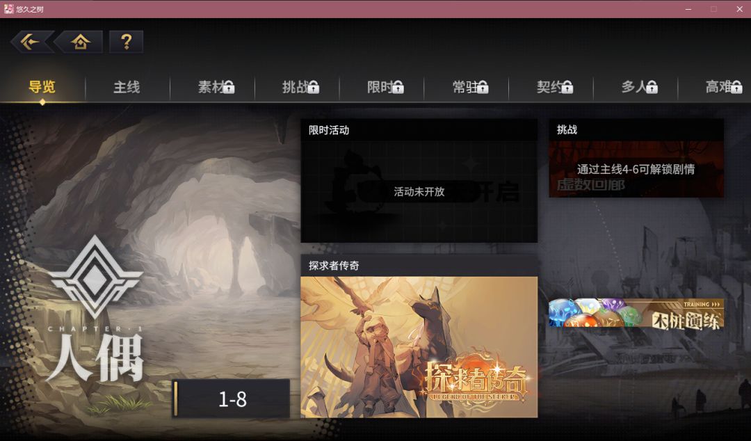 玩法内容方面很充足,包括主线、素材、挑战、多人、高难等页签,每个页签下内若干玩法。内容上与一般商业化游戏扩展玩法接近,同质化现象比较严重,缺乏新意。