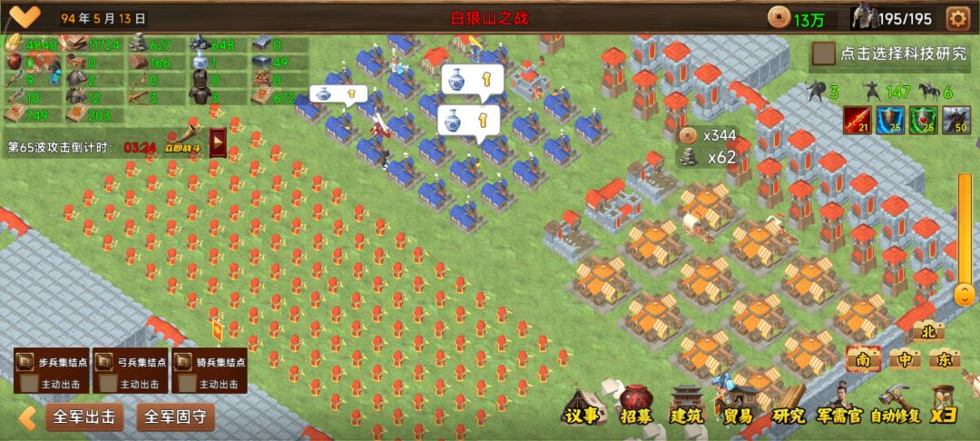 5.后期决定能打到多少关的决定因素是,有没有足够的石头及时新建石墙(有墙会打墙),所以必须有足够的驿站能及时买回石头来,什么时候石头链断了基本就游戏结束了。