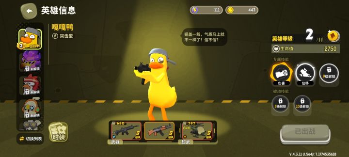 3D卡通画风,整体色调明亮柔和,感觉和香肠派对有几分像。界面结构布局常规,UI品质较好。角色造型是各种鸭子,个性化特征很明显,令人印象深刻。