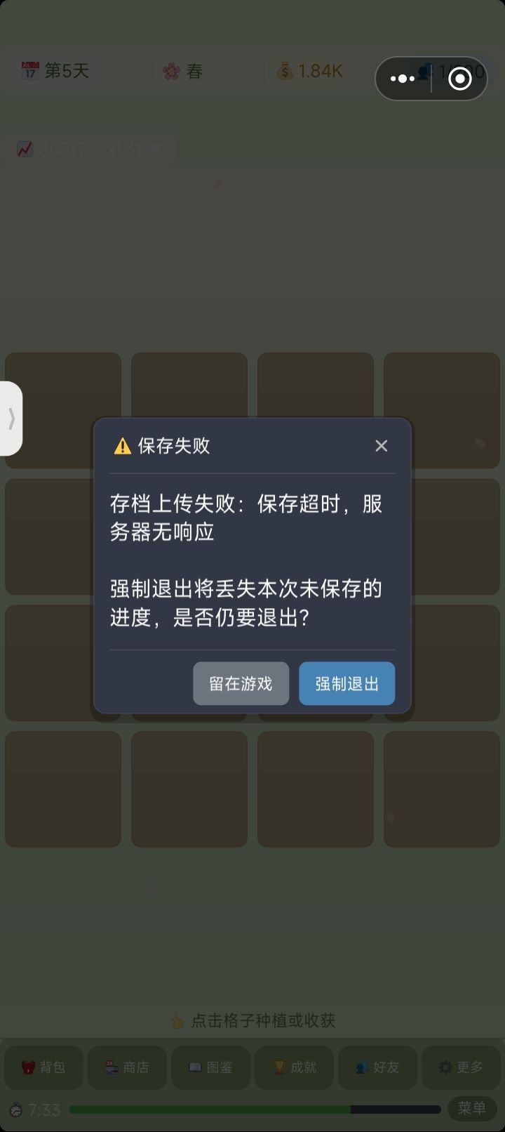 只能说是未来可期,还是有些bug。有的时候种一个种子,收获了之后,整个商店里面全部的种子都涨价了。我能理解,我买过了,我卖了的,涨价可以。但为什么,我没买过的种子全部都涨价了。6这是第一个问题,商店异常涨价。第二个问题,图标丢失,当季的植物和一些四季的植物不会显示,或者说显示丢失,在买完种子之后退出商店,有概率发生。第三个就是存档的问题,有的时候会倒退进度,他虽然显示没存上,那有的时候是存上的,就挺迷的。这样根本不知道到底有没有存,只有退出游戏的时候重新进入才知道。