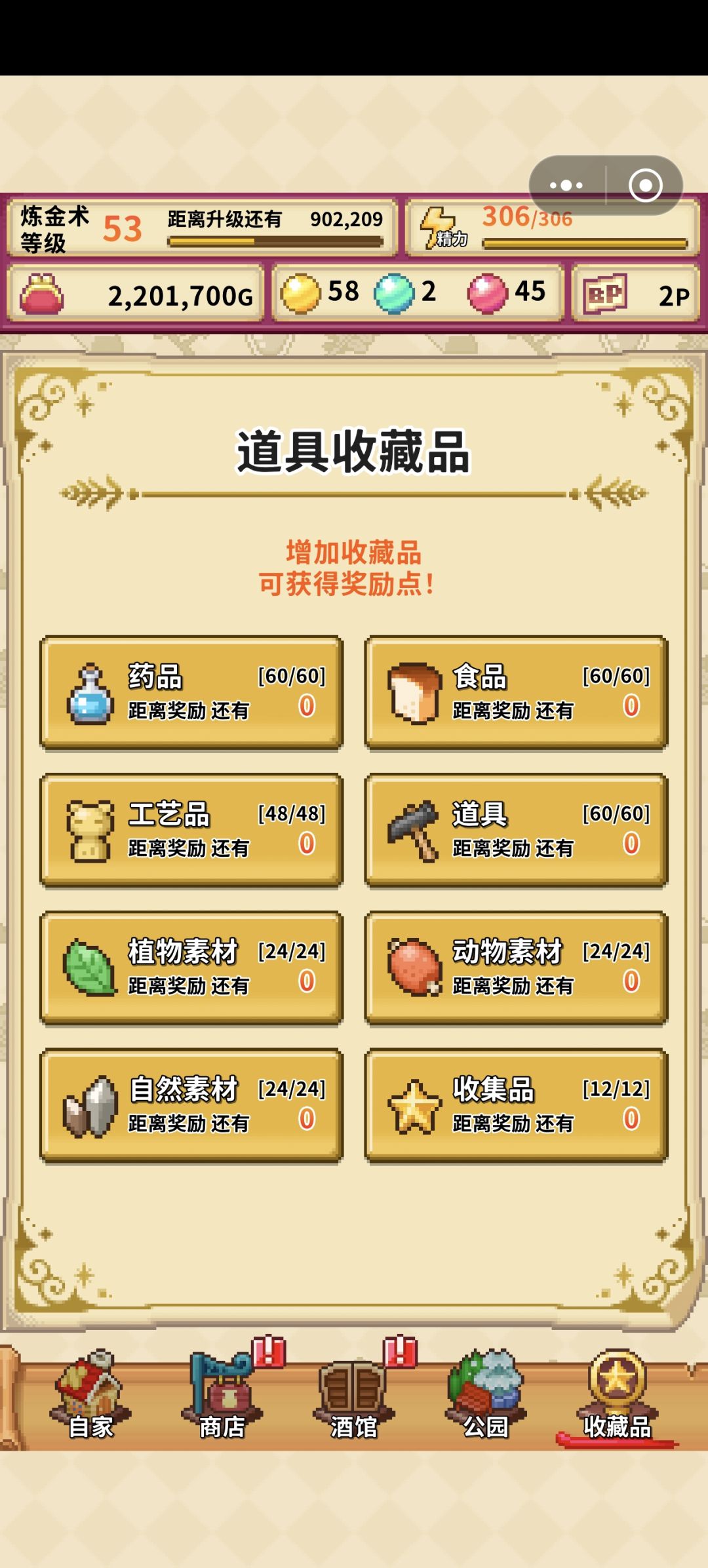 主玩法是合成材料,合成然后卖成品,大赚特赚。虽然等收集材料有点久,嗯看不了广告就省着用精力球,最后快结束才使用。就……怎么通关后才能看到主角们的像素小人……怎么不能在平时的界面查看好想和酒店老板交互,但点了没反应,聊几句也好呀。玩到结局并收集了成就