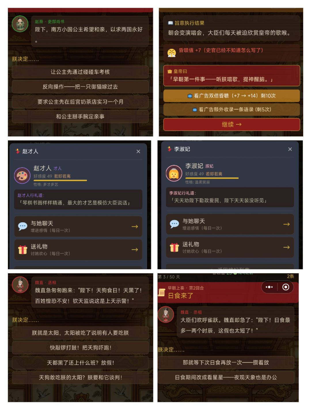 好喜欢这个游戏 玩的很开心!好有创意哈!还感觉好温暖😂这样做皇帝也挺好的 快快乐乐...哈哈 荒唐的皇帝主打开心 (大臣都不想造反的 哈哈😂)追评:太好玩了 常玩常乐 作者小脑袋瓜子真棒👍哈哈笑一天哈哈哈!