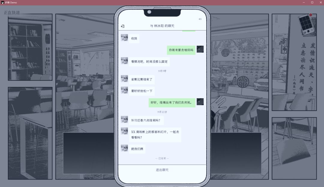 Demo版本内容量挺足,按一般阅读速度大概要2小时才告一段落,阅读速度快一些会缩短。文本内容大部分是剧情对话,也有少部分对角色心里想法的描述和简单场景描述,有些平铺直叙。