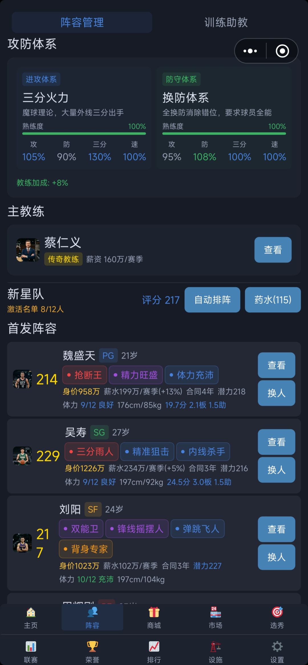 挺好玩的,初期比较难,尤其最开始三个联赛级别。等教练等级起来,建设完善后,就比较舒适了。替补不要太多,太烂的替补不要,不用触发工资帽也可以晋级。选秀是关键,可以卖体力最后一名选秀,2-3赛季就翻身了。感谢群里大佬指导支持勤劳的小陈!