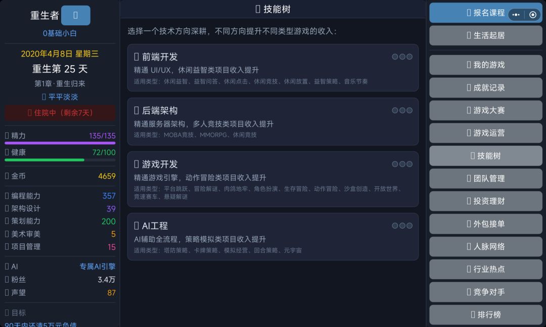 很赞的游戏!市面上各种软件,最近的就例如TapTap关于模拟器的游戏各种各样,例如说角色扮演或者说是画师模拟,明星模拟,退休模拟场景中的那种益智小游戏,又或者说到大一点的各种5v5,VR之类的。总之这些东西都很酷,未来可期,屏幕前的各位如果对标题就是重生之我用AI做游戏成为程序员感兴趣的话可以进,我之前是看程序员模拟器各种类型的游戏之后看到这个的。原先第一眼看到AI什么什么的又加上开发游戏就感觉非常好奇,因为跟现在2026这种AI已经在25年国内爆发后飞来飞去的情况下坚守本心,出了一个类似的总结版本,还是令人很激动的一个模拟器![[表情_开心]](https://img.tapimg.com/market/images/48516f625646b5ea2c66f0cab3c9c52a.png)