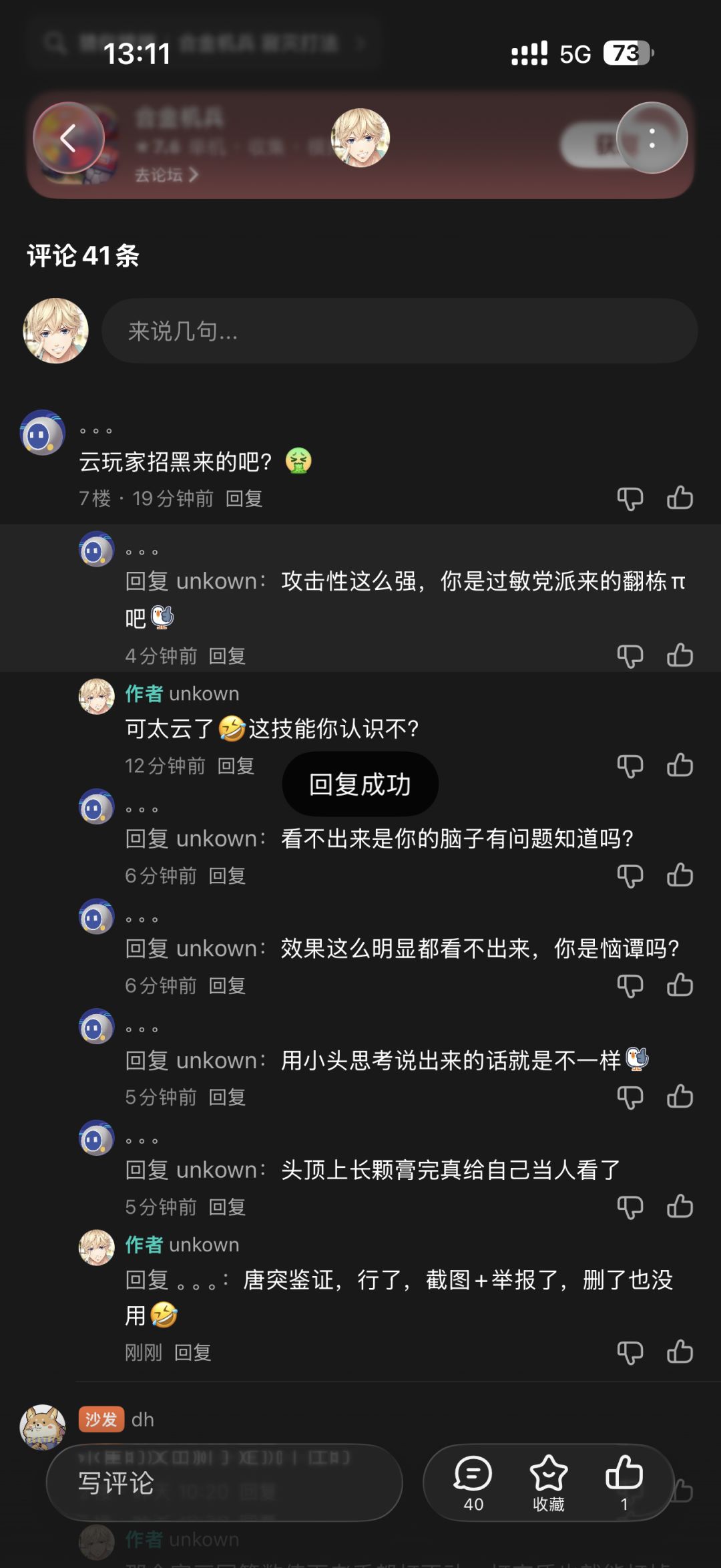 最气人的是用托骂人,早先这游戏就有托,我就对线过半天。其中有个叫柚子的接近离职的时候自己都承认了。这次回坑就一直在那激将试图让我去打他们那个屁新副本,再去充钱提数值,我说我不想打,车也别买了一万年养不好就开始疯狂咬人。有礼貌的都该叫一句衣食父母,咸鱼科技狂到敢弄一堆号骂人逼氪。号不够了还在昨天注册了俩小号继续撕咬,水军被发现身份当时就改id和身份以后继续骗人