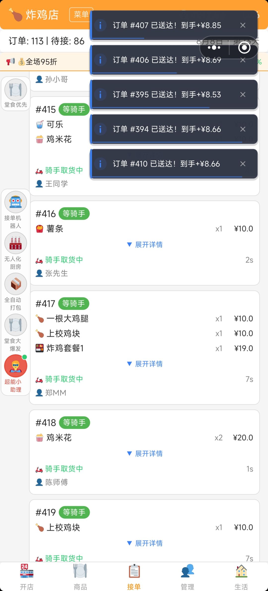 开始是订单多的时候会吞单,现在也是,我那货都堆满了,直接显示没货