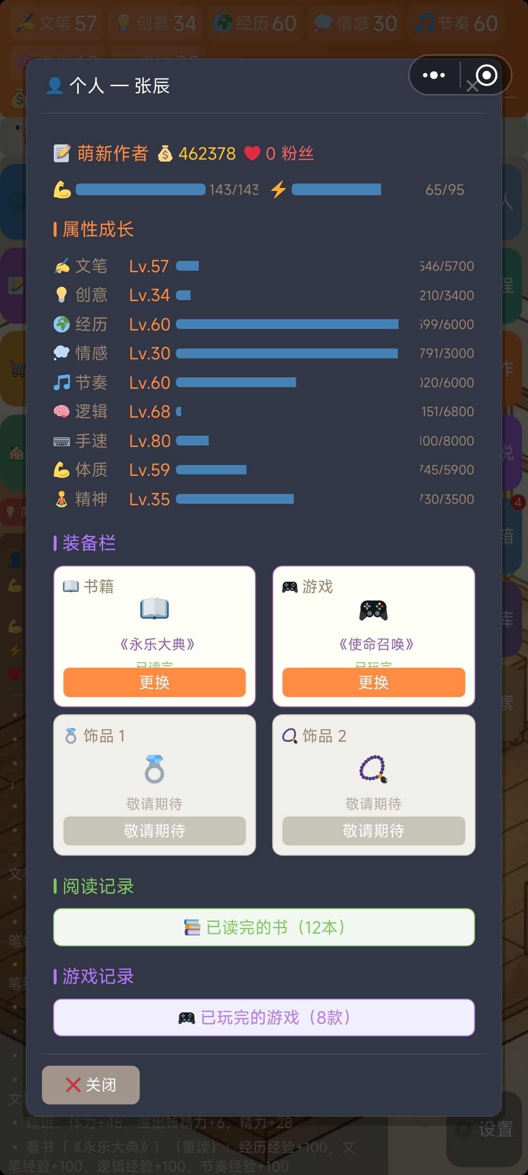 总的来说游戏挺好玩的,但是前期确实难受,后面玩的很爽。前期主要目的是生存,利用零碎时间写书,等到写书可以养活自己全职写书发展的就快起来了。写书尽量写同一个大类,同一个剧情的,这样后面的书有加成,评分更高。主角,配角,剧情啥的直接选等级最高的就行。