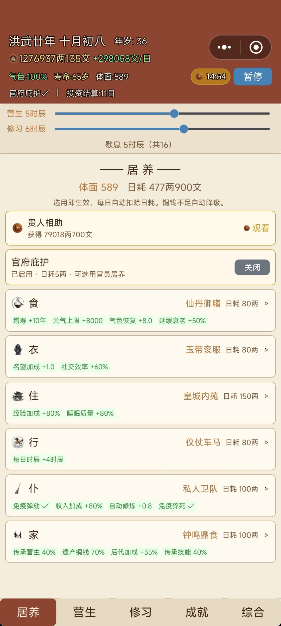 梭哈商业,这个是从别的评价里面看到的攻略试了一下,确实可行,到了盐商,基本上就可以把居养拉满了而且貌似盐商只有技能要求和本金要求,对于前置职业的等级没有要求我没太注意,可以看我的截图,我中间跳了一个职业,直接转职盐商