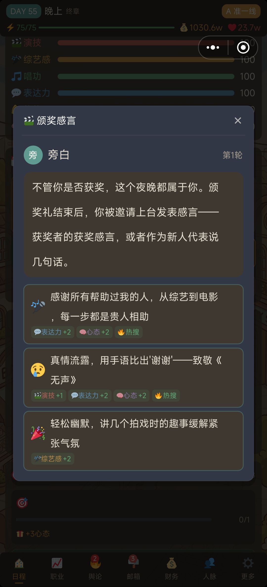 优点:对话内容丰富真实,需要和名导处好关系能接片,而他们的性格也不为相同,很多选项都有不同走向,让人有很强代入感。