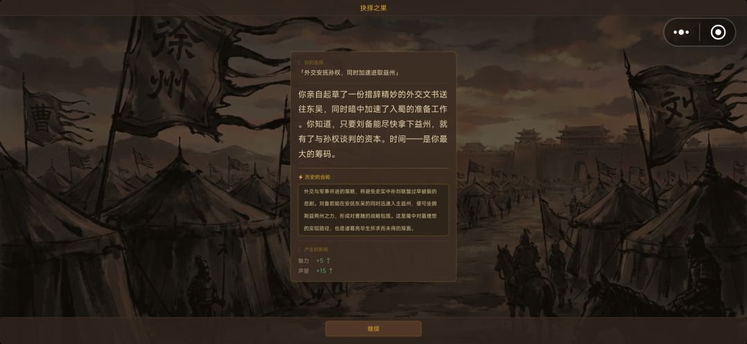 同时很容易看出来,作者大大对三国故事的了解较为粗浅,大量的人物场景错误,让人难带入。只能说想法很好,但目前很难称得上为一个游戏