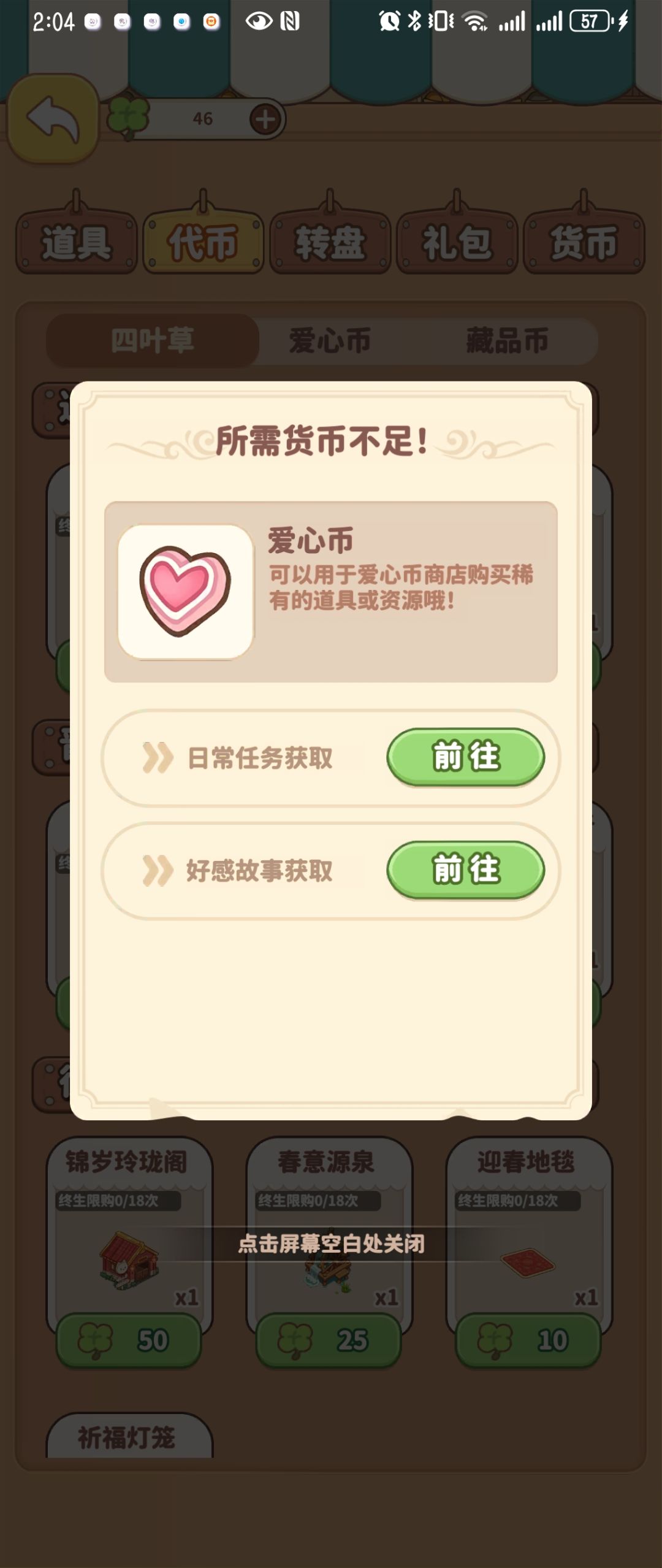 最后提一点点意见,刚更新不知道是手机机型不适配还是什么问题,商城代币功能,点爱心币弹出的是四叶草页面,点四叶草弹出的是爱心币页面,希望官方看看是不是什么bug,还有官方大大继续加油!我会长期体验的!这个画风真的很可爱!