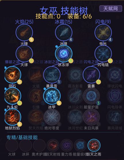 4.全力加点,全力加点,天赋优先点出女巫的时间领主,然后左边的陨石之主,右边的玻璃大炮,剩余的天赋点看心情,技能火系,走爆发路线。