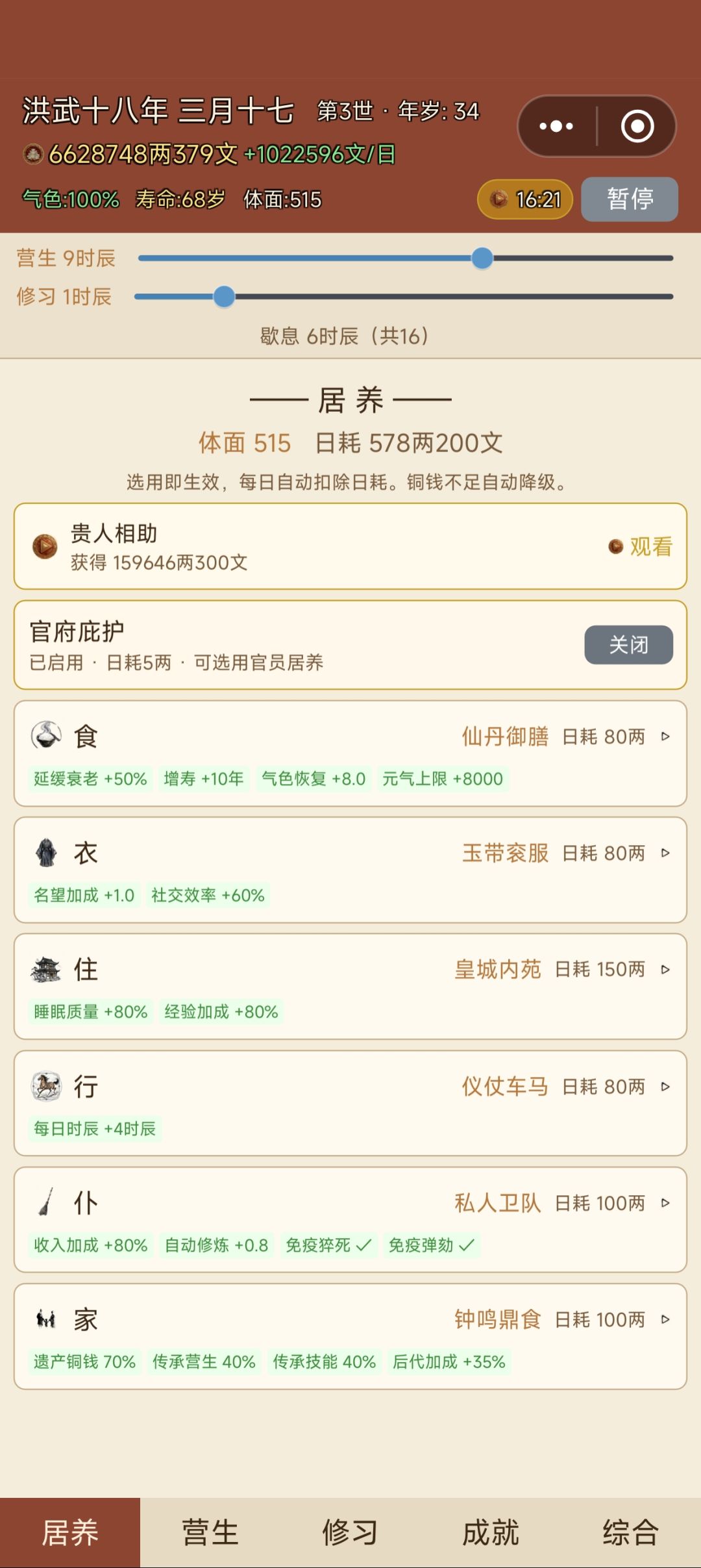 在第一第二世踩完雷之后,我研究了一下,发现行商的门槛比较低,于是就迈入了商业这一板块,没想到真的成功了,现在冲击票号大东家!直接一整个人生圆满