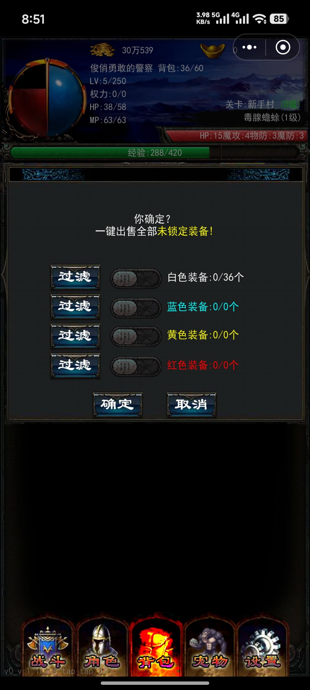 基础的几项就感觉问题很大1. 装备更换背包不能换,只能角色界面更好,这就算了,没一键更换,手动也要把之前的装备卸了才能选择,不然就只能看到前面的一个垃圾装备。2.装备回收界面也感觉有点问题回收界面是按照颜色分,但是他装备你看着都是白色,但是会有其他颜色的小标记,属性也比白装强,但回收还是属于白装,很容易强的全回收了只留垃圾,特别是他背包还没有锁定选项,只能说装备这方面问题很大3.其他的就是前期miss率很高,不过也可能是游戏特色,因为装备这方面问题太大,就没继续玩了。