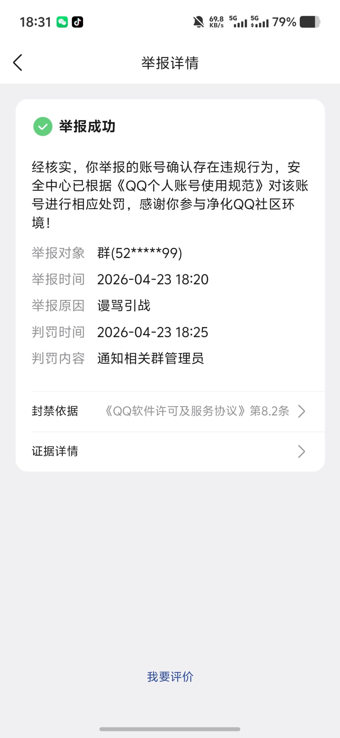 为维护自身权益,我收集聊天证据后向腾讯QQ平台提交违规举报,平台审核确认群内存在违规言论,已对该《单挑篮球》官方群下发违规警告处罚。