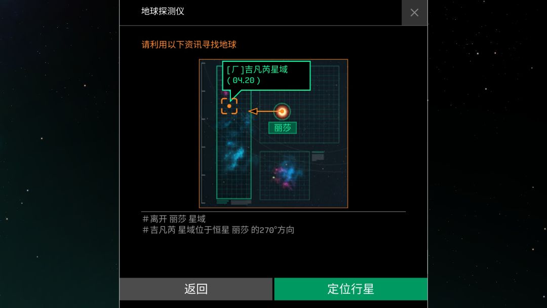 一开始的时候坐标、星系和示意图全部给你,后期甩给你一个莫名其妙的星系和“XX星旁边”这样一个模糊的描述,偌大的宇宙你就找去吧,找不死你算你输。