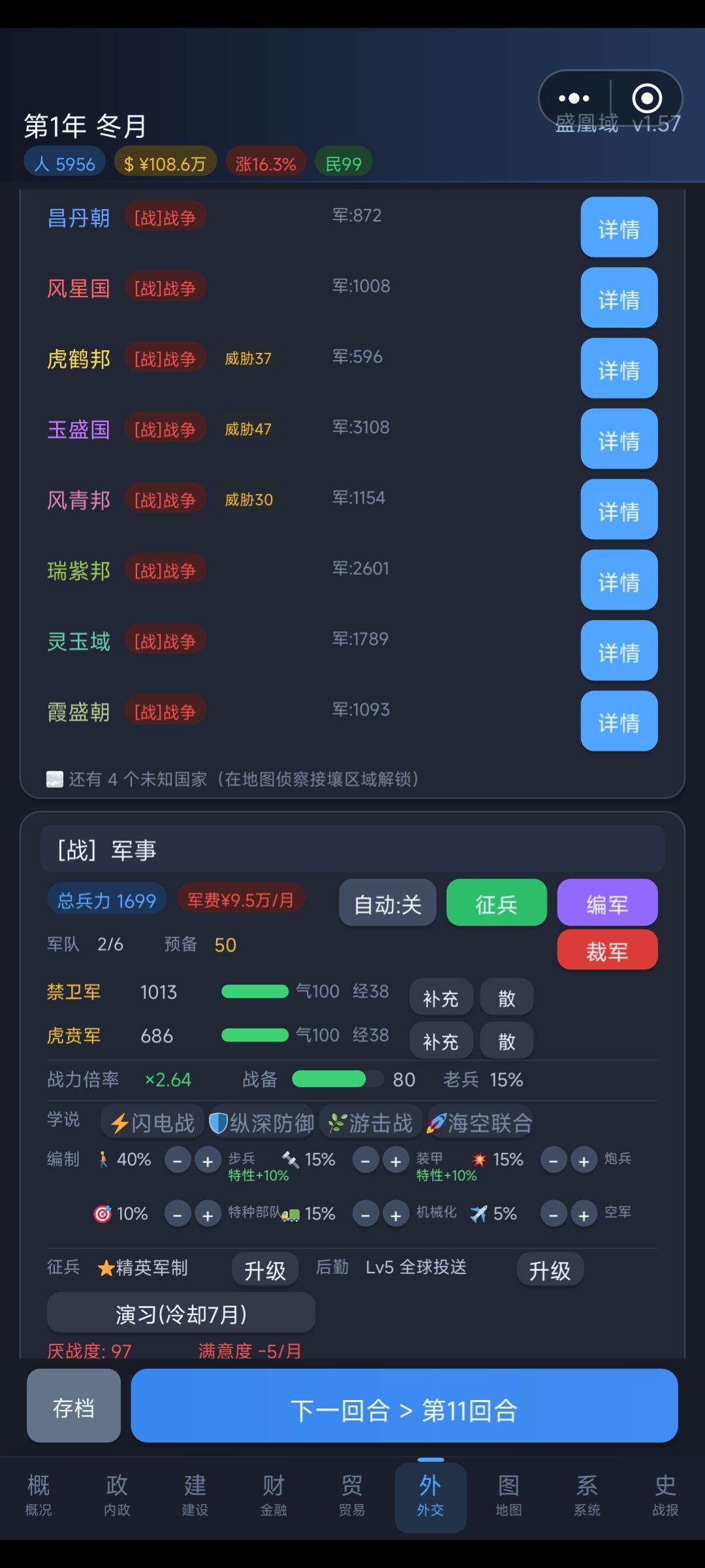 3.我基本上靠这个bug大发展,但是任然会有个别国家实力和人数比我大的多。貌似ai国家也有作弊的。