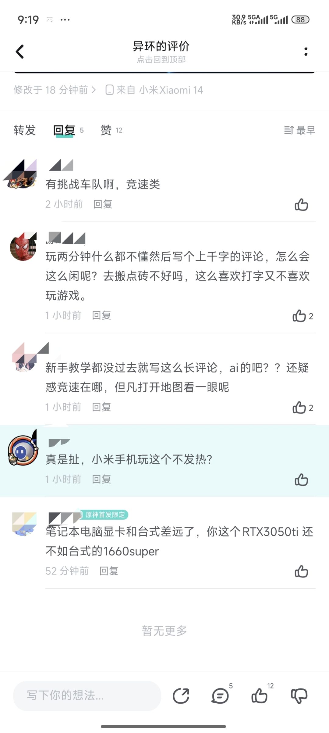回答:小米手机有些玩这个发热,有些玩这个就不发热。我要现在还拿我以前的那部小米11玩的话,那肯定发热。但是我拿我这个小米14玩着确实没发热。