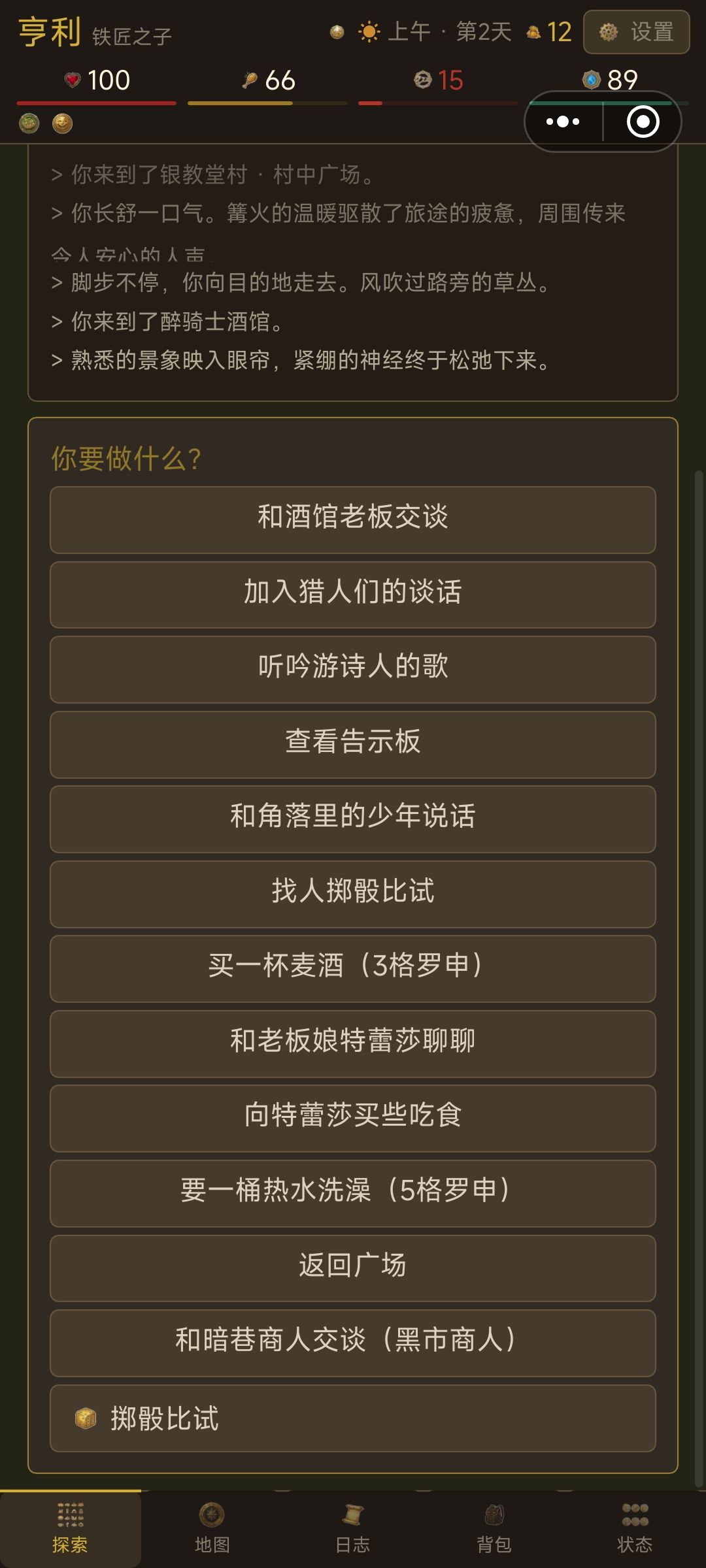 特蕾莎找些吃的这个点了没有反应,也没有显示,不知道为什么。同样的还有点击向猎人购买猎物后也是返回上个界面无反应。还有很多数值有什么影响、怎么用没有说明,比如体力怎么恢复,什么时候需要用到我到现在没有看到指引。