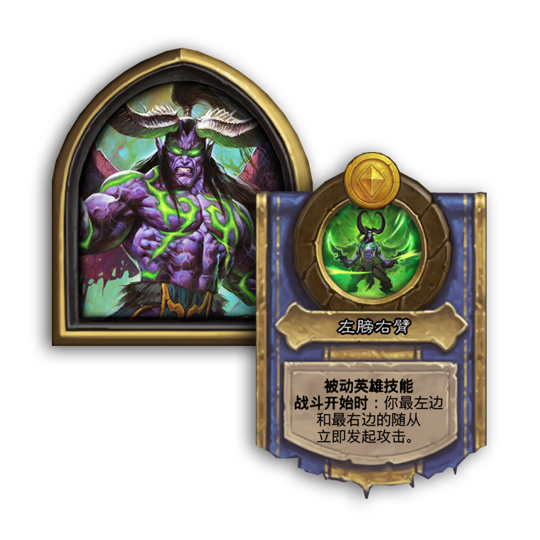 ● 左膀右臂:[被动] 战斗开始时:你最左边和最右边的随从立即发起攻击。