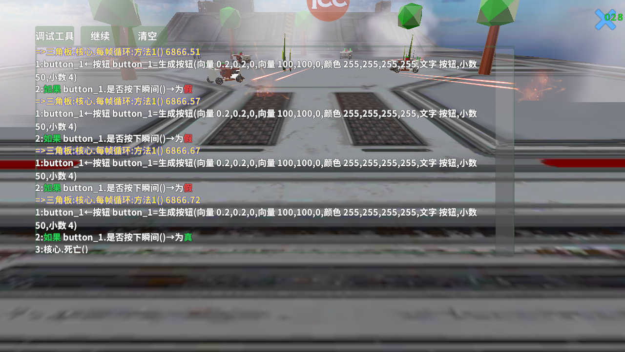 即“如果按下按钮,那么怎么样?”这个分为两种情况,第一种是没有按下按钮,第二种是按下了按钮。(这属于三大语句中的分支语句,顺序语句就是之前的那个生成UI。是按照正常的顺序往下执行的。这个则不然,它需要一定的条件。另外一种循环语句将在之后的教程中详细解说。)