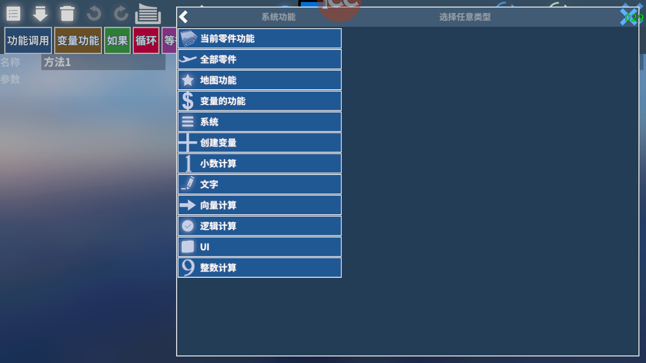 系统不断的更新是逻辑编辑变得更加方便。左边一行能方便你查找不同类型的变量。右边可以帮你找到相同类型变量中的不同变量。这时我们点击右边的黄色按钮。