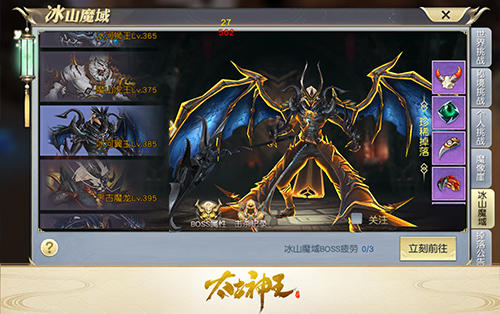九天大陆有一处常年被冰雪覆盖的神秘魔域世界,被称为“冰山魔域”。这里孕育着丰富的星辰矿藏,同时盘踞着千年魔龙、魔山虎王等诸多强大魔兽BOSS,机遇与危机并存!修仙者等级达到350级后方可进入,采集星辰矿藏或挑战魔兽BOSS,均可获得战兽宝箱,宝箱开启有几率收获战兽装备、星辰石等稀有材料。